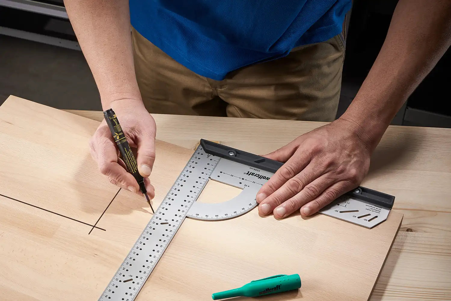 Con una sola herramienta ofreciendo múltiples funciones, esta escuadra plana, escala de medición de ángulos, marcador paralelo, plantilla de marcado y guía para bisagras ocultas te brindarán un trabajo más eficiente y preciso.