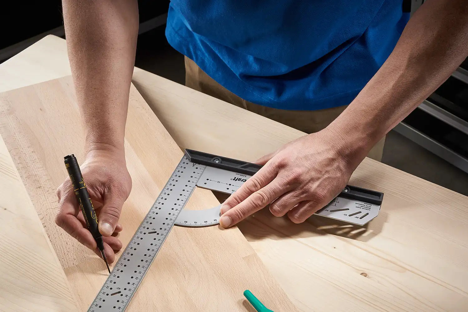 Comprueba la precisión de tus trabajos de carpintería con una exactitud sin par gracias al tope de 90° y 45° extraíble de la escuadra carpintera. Olvídate por completo de los fallos al tomar tus medidas.