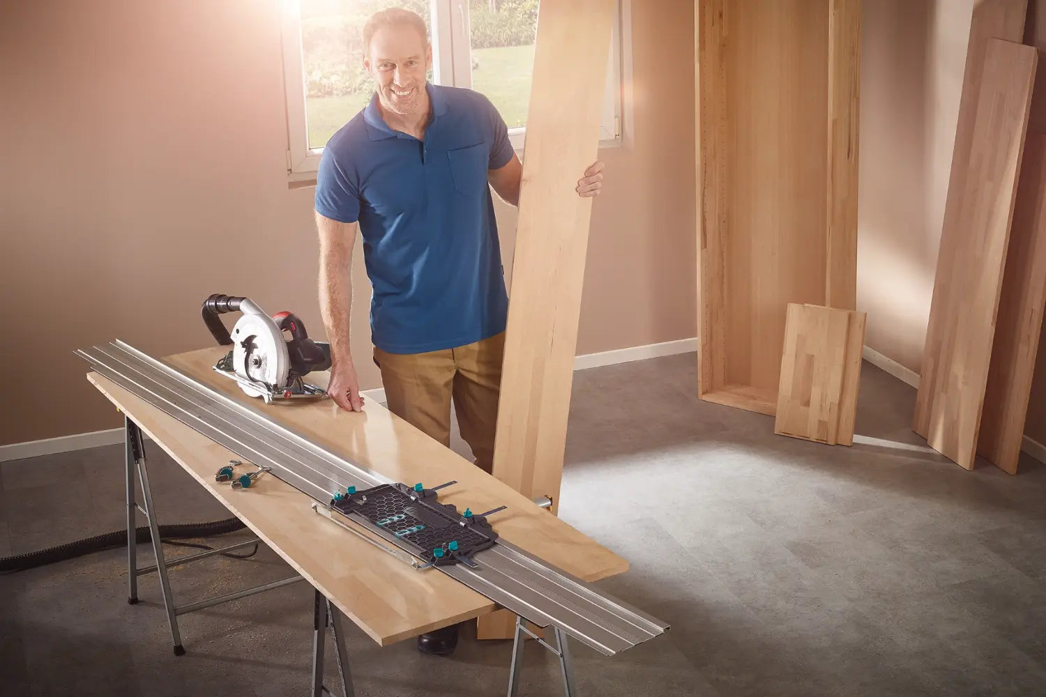 Descubra un nuevo mundo de posibilidades con la extensión para riel FKS 145. Esta sencilla y rápida prolongación del riel de guía FKS 145 le permitirá trabajar con piezas de gran tamaño. Prolonga la guía a 255 cm con una longitud de corte máxima de 220 cm.