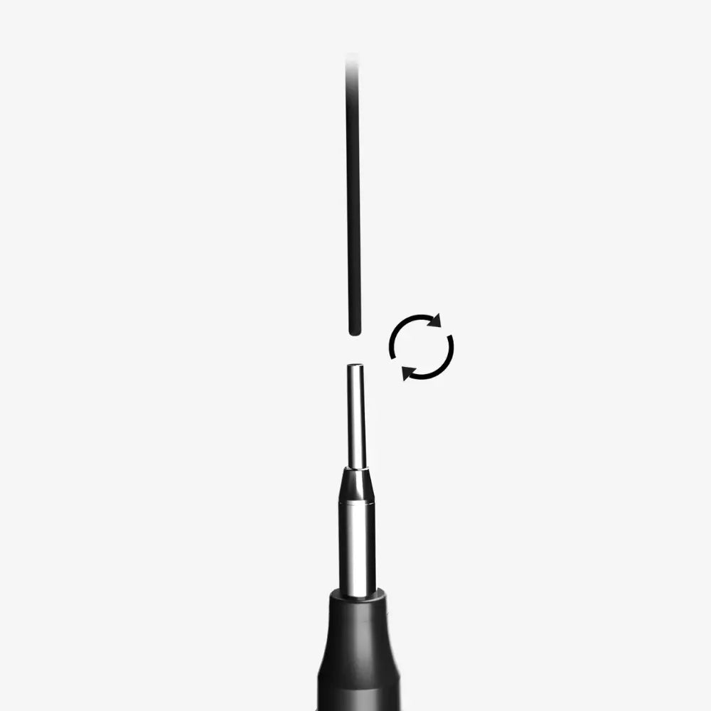 La solución de marcado más avanzada para lugares inaccesibles. Su diseño patentado con punta larga te da acceso instantáneo. La punta telescópica de acero inoxidable y la tecnología Twist&Revive garantizan que lo usarás hasta 3 veces más que un marcador normal. Y lo mejor: es totalmente recargable.