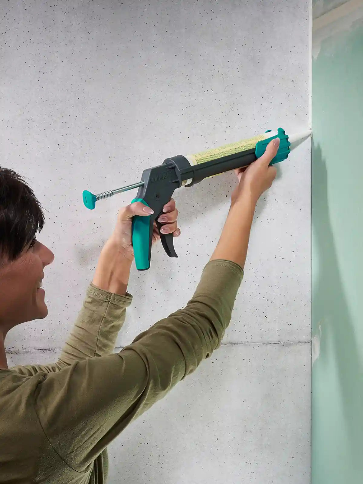 La pistola calafateadora MG 200 piensa en ti. Su diseño libera la presión justa para un flujo continuo y controlado, cuidando tu mano de esfuerzos innecesarios. Aplica siliconas y acrílicos de forma limpia y pareja. Finalmente, un sellado simple.